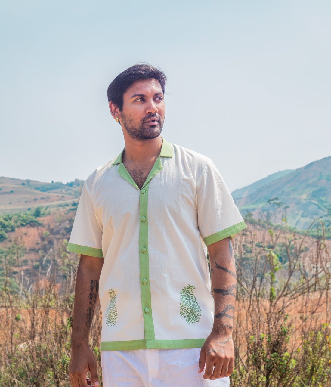 This unisex sky blue shirt is made from soft mul cotton and features hand block...