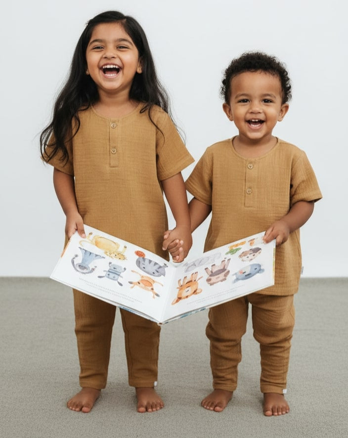 Keep your little explorer comfy and cool in this Organic Cotton Half Sleeve Toddler Shirt....