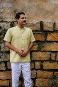 Linen Mandarin Collared Shirt Yellow