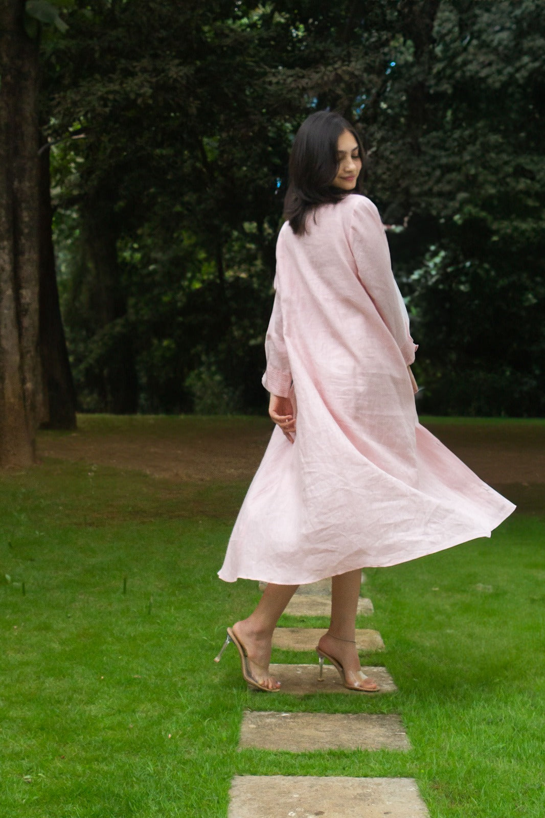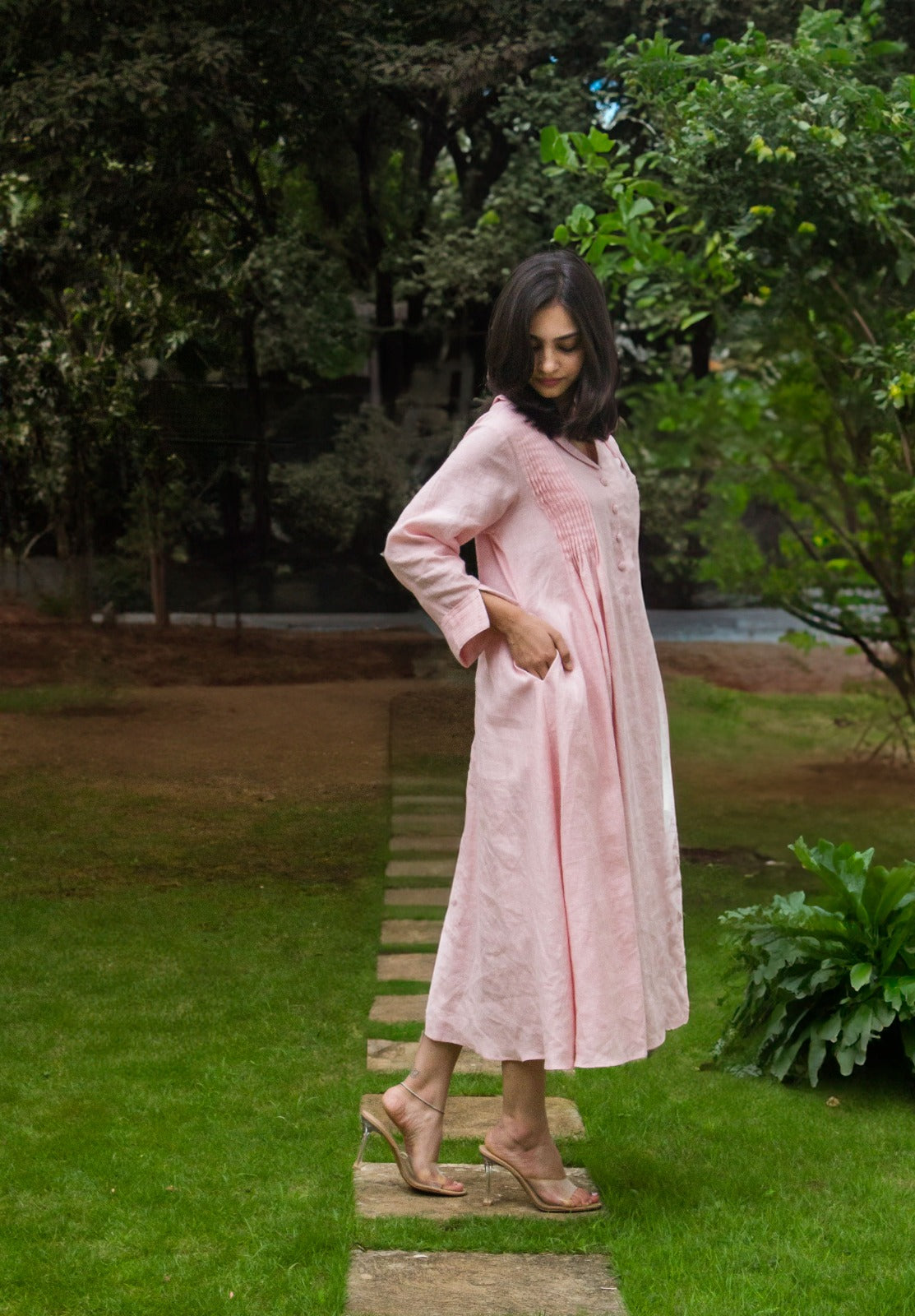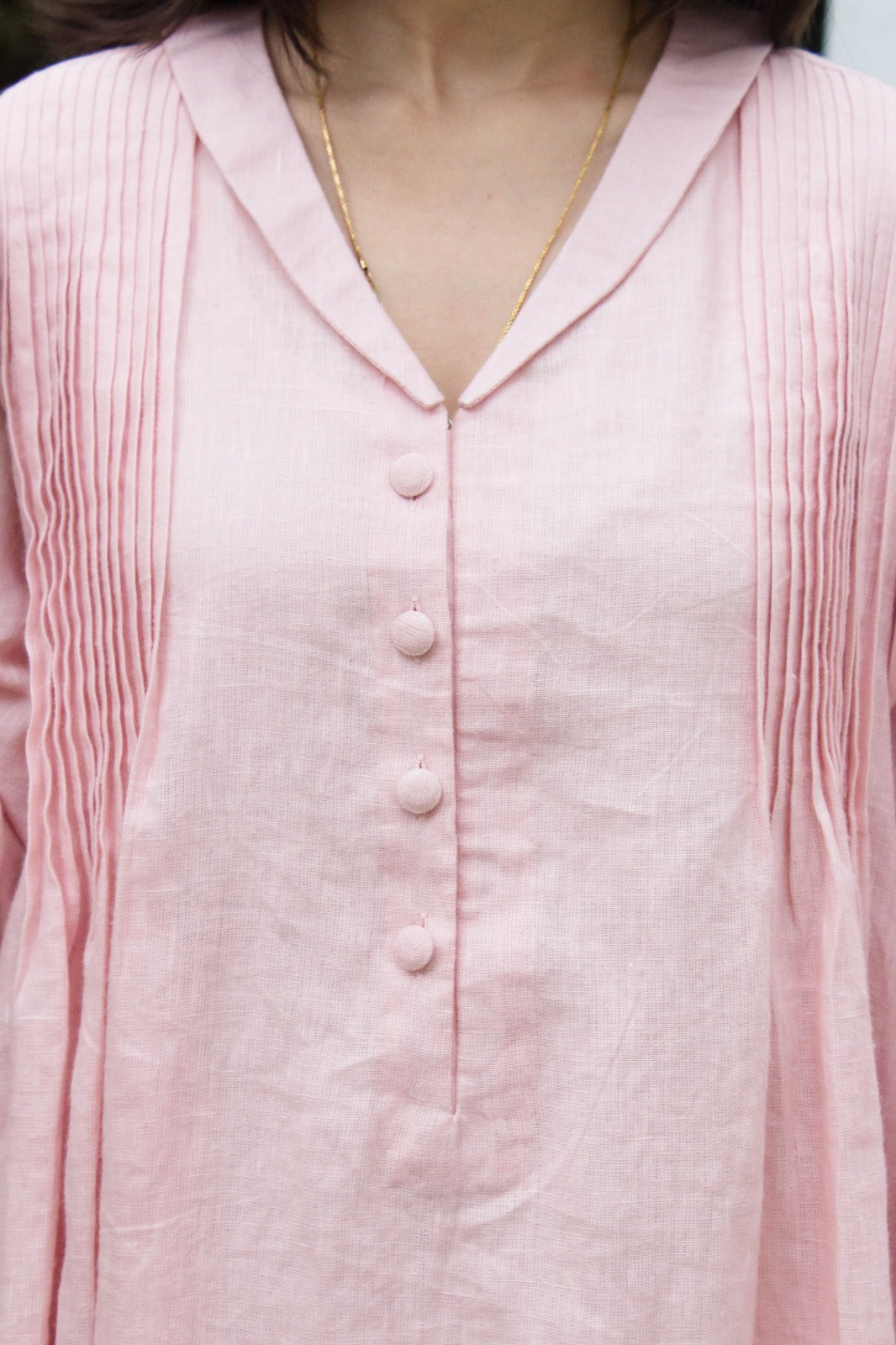 Linen Shawls Collar Dress Peach