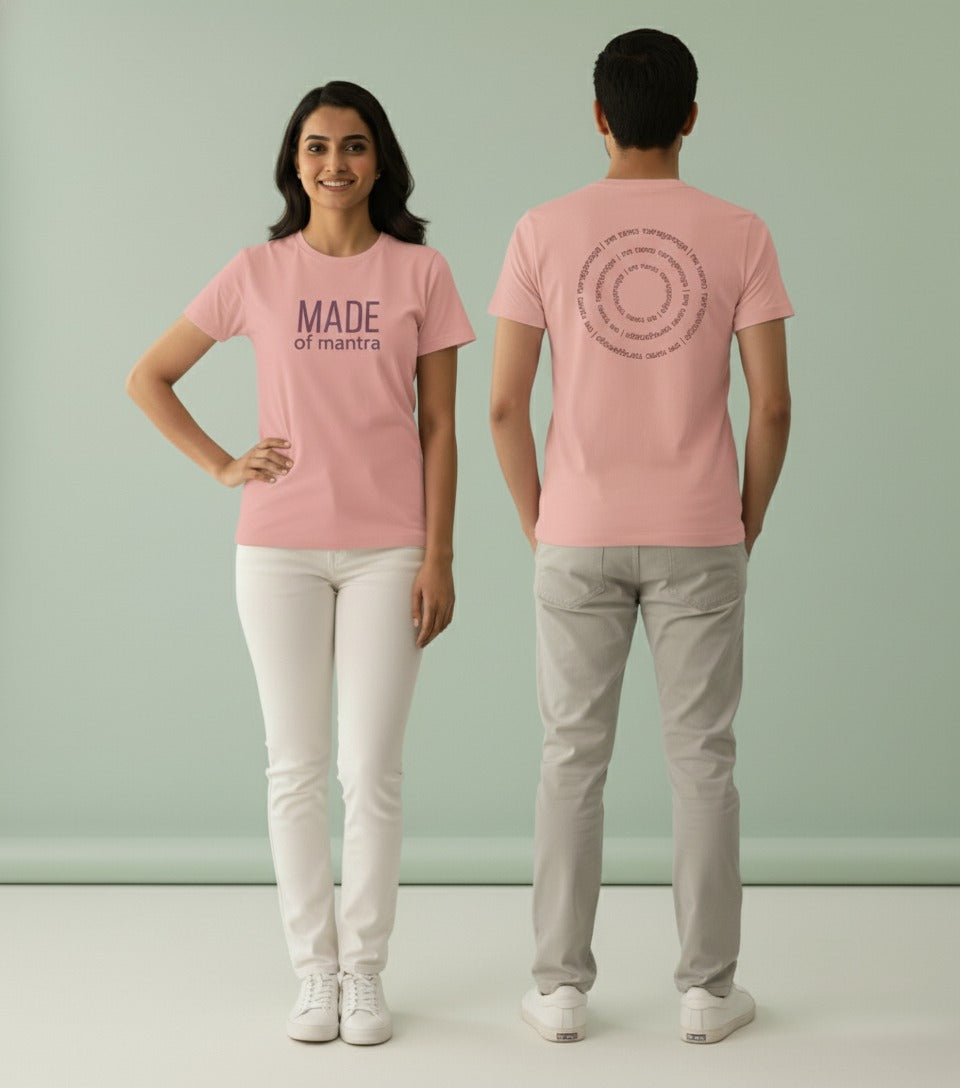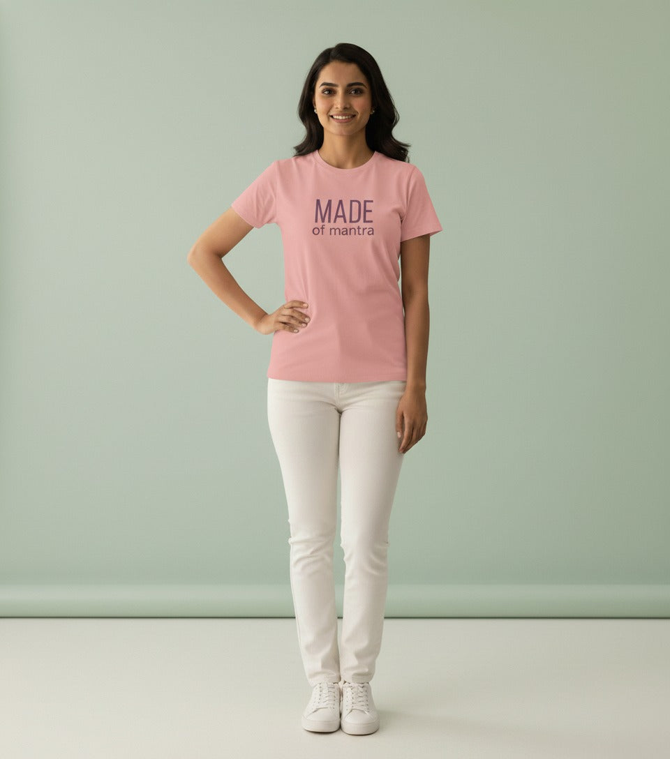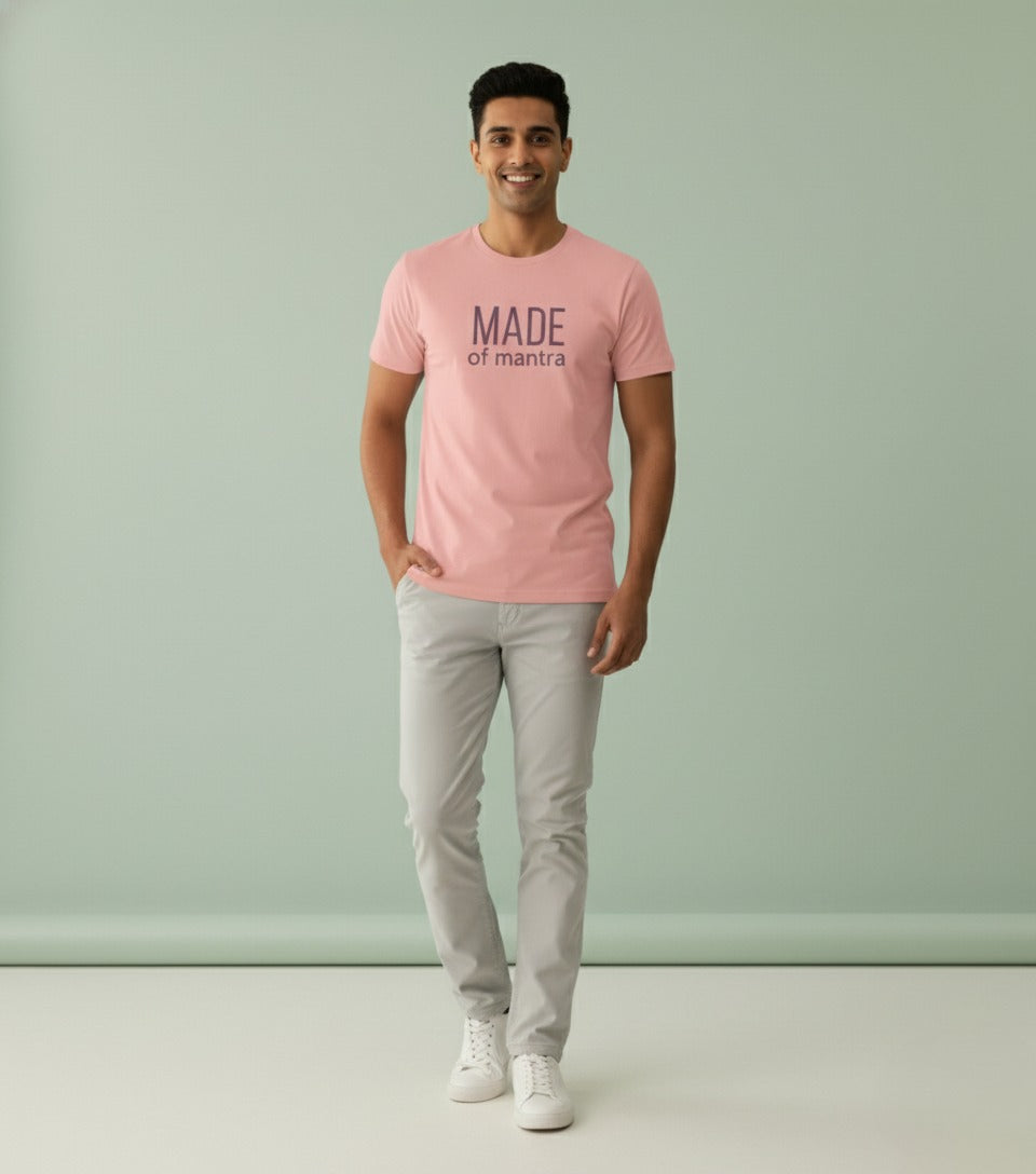 Step into comfort and style with the "Made of Mantra" cotton T-shirt. Crafted from soft, breathable cotton, this tee keeps you cool while adding a fun, playful vibe to your wardrobe. Whether you're lounging or out with friends, its easy fit and catchy design make it your go-to for effortless everyday wear.