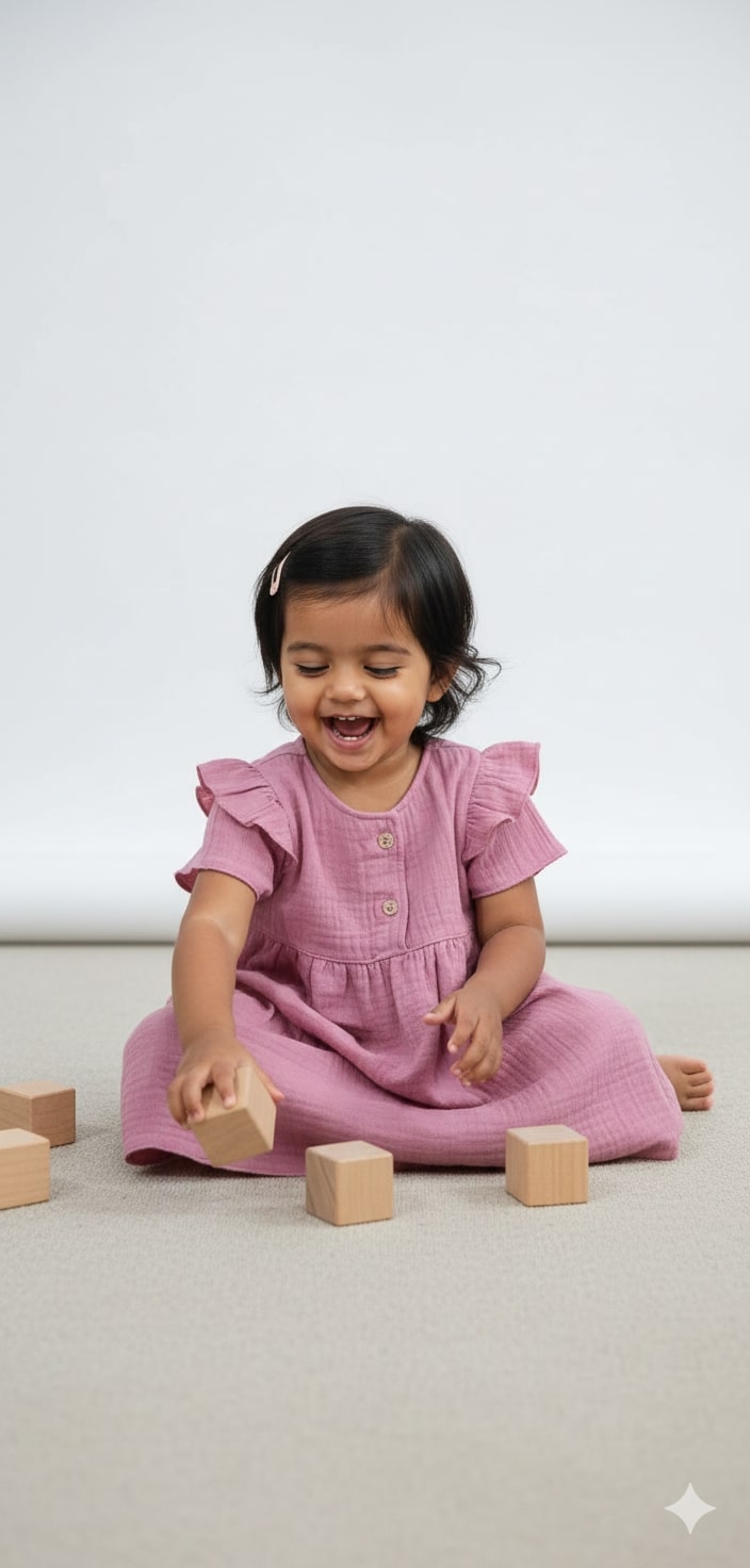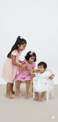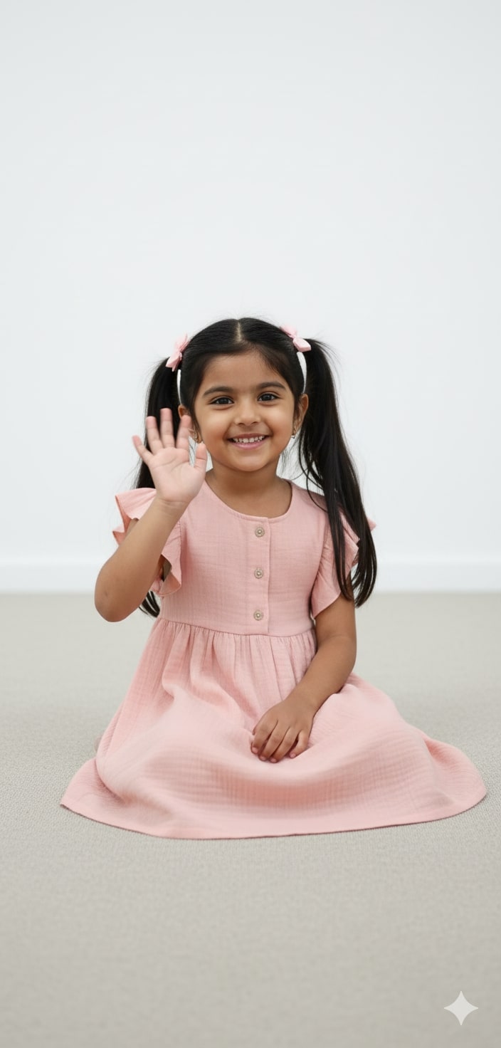This playful organic cotton dress for little girls offers comfort and style with its soft fabric and charming ruffle sleeves. Falling just below the knee, it allows for easy movement and endless fun. Available in three delightful colours—white, mauve, and peach—this dress adds a sweet touch to any little one’s wardrobe. Perfect for playdates or special occasions, it’s gentle on the skin and kind to the planet.