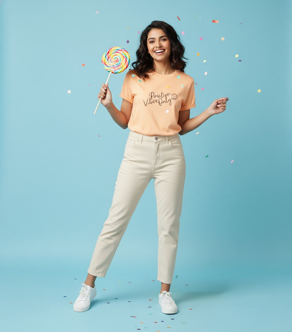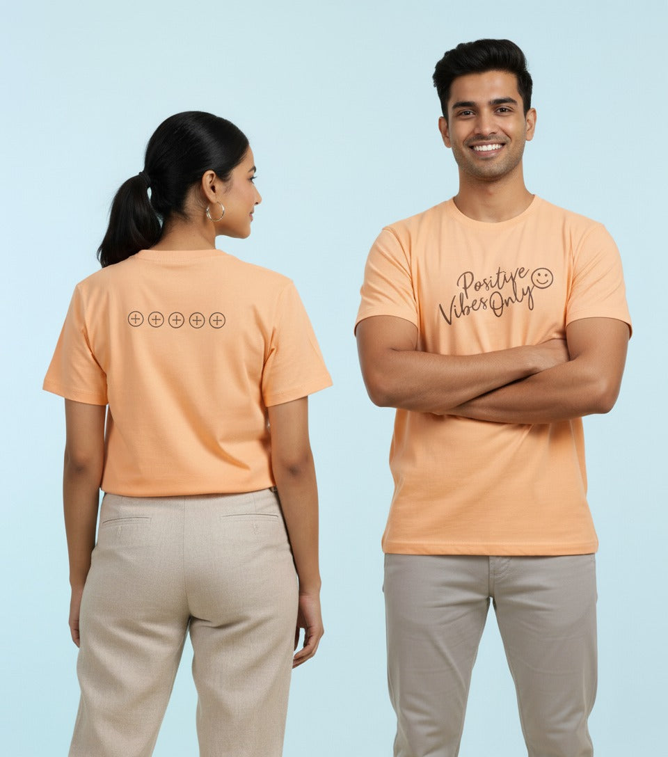 Spread joy everywhere you go with the "Positive Vibes Only" cotton T-shirt. Crafted from soft, breathable fabric, it keeps you comfy while brightening up your day. Perfect for casual outings, this playful tee encourages good energy and happy moments wherever you wear it.